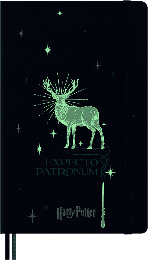Pour positive thoughts onto each page to ward your notebook with your own magical creativity. This Harry Potter Limited Edition features cover graphics that glow in the dark, a quote printed within, and two bookmark ribbons track your ideas, projects and notes. Flick through the ivory-coloured pages to find the patronuses hidden inside and use your favourite pen to practice the wand gestures printed on the endpapers.