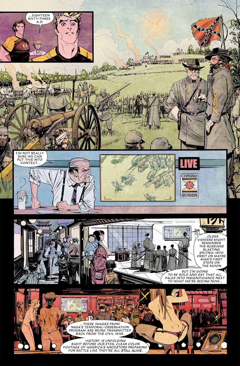 A satellite is blasted back through time, beaming hazy pictures home to the present day from the American Civil War.