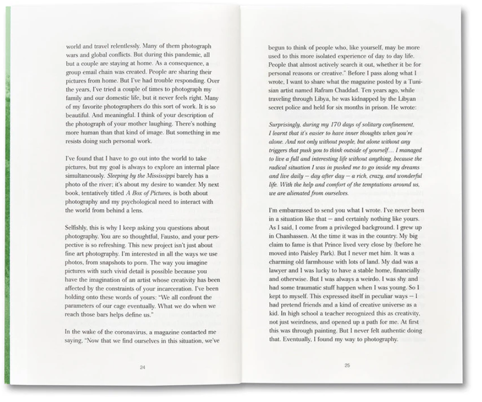 In January 2020, Alec Soth received a letter from Chris Fausto Cabrera, an inmate of the Minnesota Correctional Facility in Rush City, asking the photographer to engage in a dialogue.