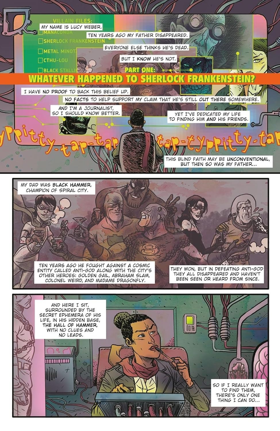 Sherlock Frankenstein lies at the heart of the mystery of what happened to Black Hammer, Spiral City's greatest hero, and Black Hammer's daughter is determined to uncover his role.