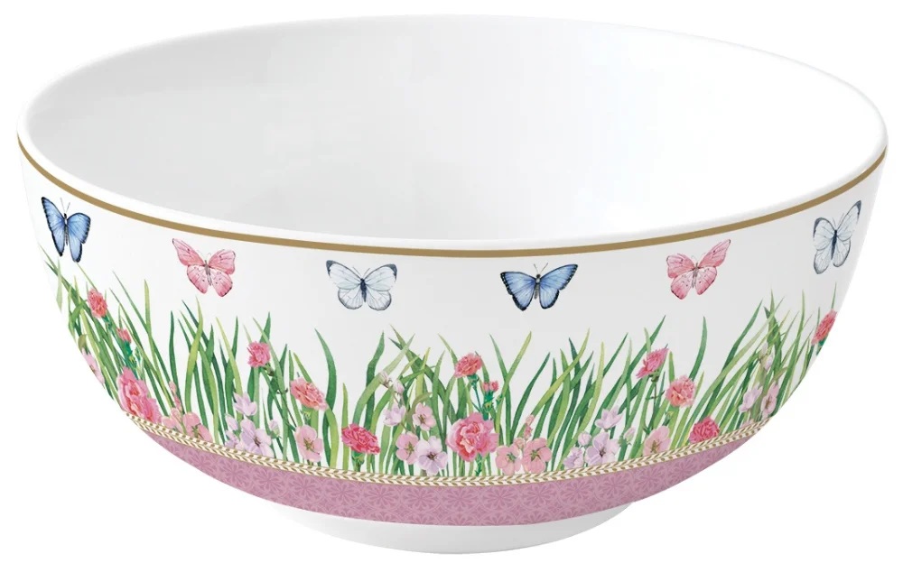 Bol din porțelan cu diametru de 15 cm, decorat cu motive florale.
