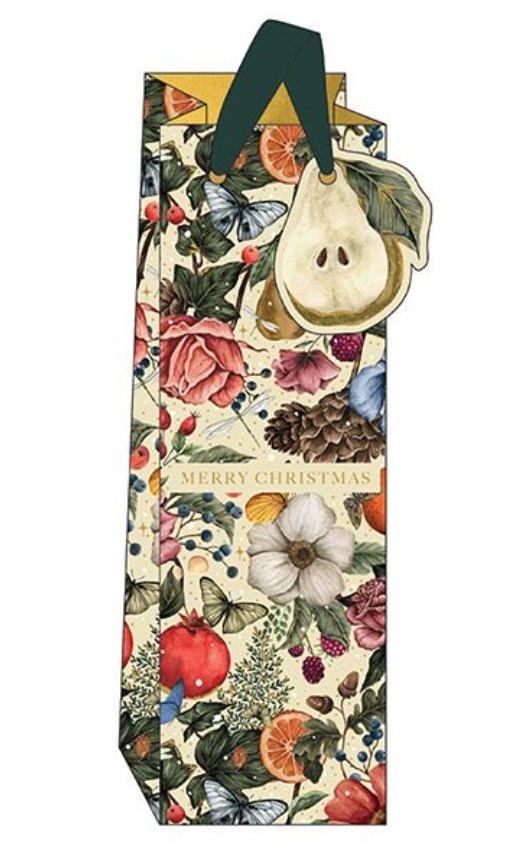 Punga de cadou - Bottle - Merry Christmas Foliage Red